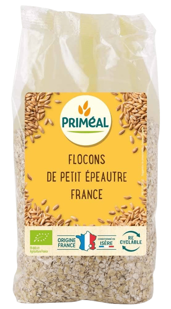 Réhydratez et incorporez les flocons de petit épeautre bio Priméal dans vos préparations salées comme sucrées. Cultivé en France.