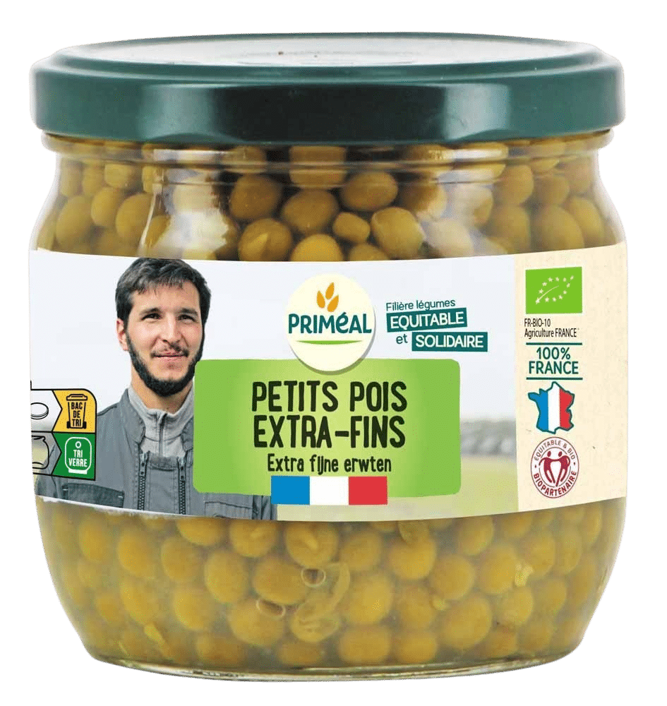 Le petit pois extra-fin bio Priméal est issu de notre filière française et cultivé en plein champ par nos producteurs partenaires.