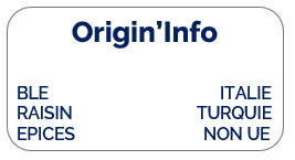 Semoule complète de BLE dur* (78%), raisins secs* (8%), légumes* (4%) (tomate*, poivron rouge*), épices* (2,8%) (paprika*, cumin*, curcuma*, gingembre*, piment*), huile d’olive vierge extra*, flocons de pois chiches*, sel marin, ail*, persil*