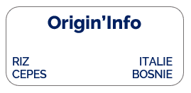 Riz Arborio blanc* (90%), cèpes* (3,5%), oignon*, sel marin, huile d’olive* vierge extra, persil*, poivre*.