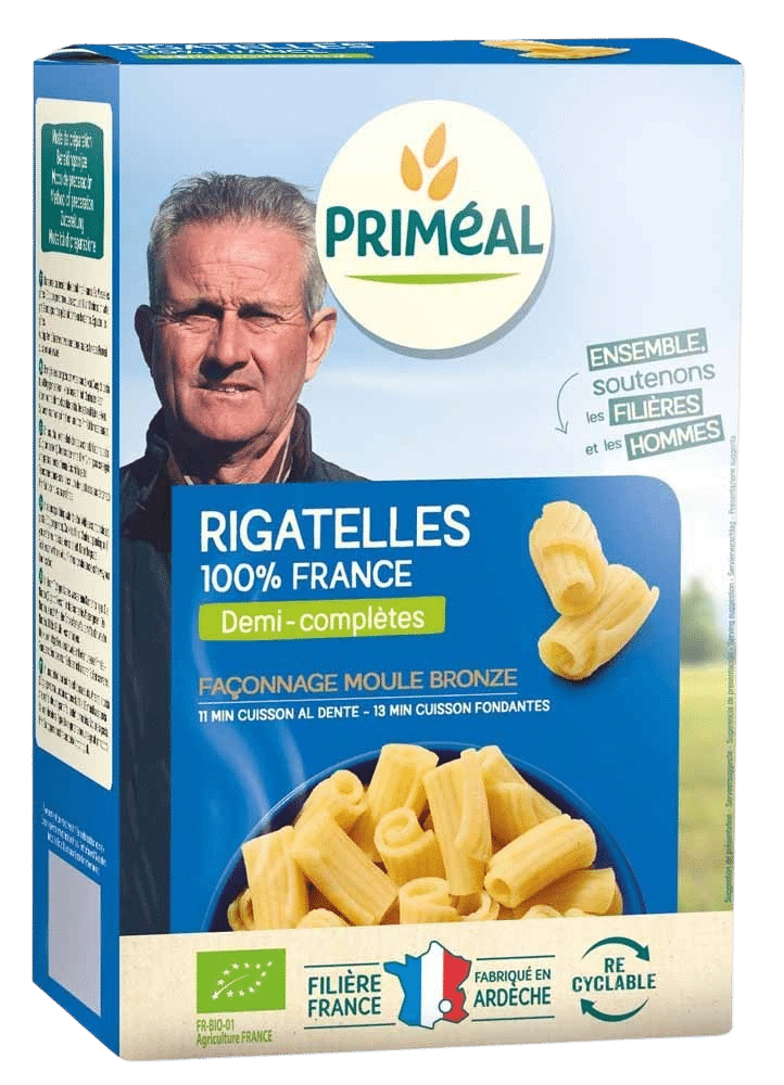 Pour ces farfalles demi-complètes, Priméal a opté pour une fabrication traditionnelle 100% italienne. Idéales natures ou en sauce.