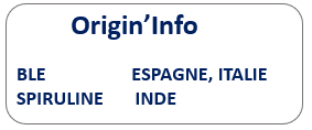 Semoule demi-complète de BLE dur*, spiruline* (2%)