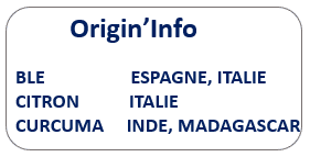 Semoule supérieure de BLE dur*, huile essentielle de citron*, curcuma*, safran*, poudre d’OEUF*