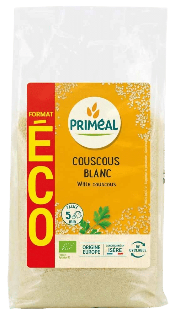 Le couscous blanc Priméal se consomme chaud, en accompagnement d’un plat de légumes, mais est aussi délicieux froid en taboulé.