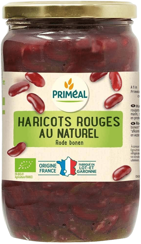 - 350 g de haricots rouges cuits Priméal (soit 150 g de haricots crus à cuire)