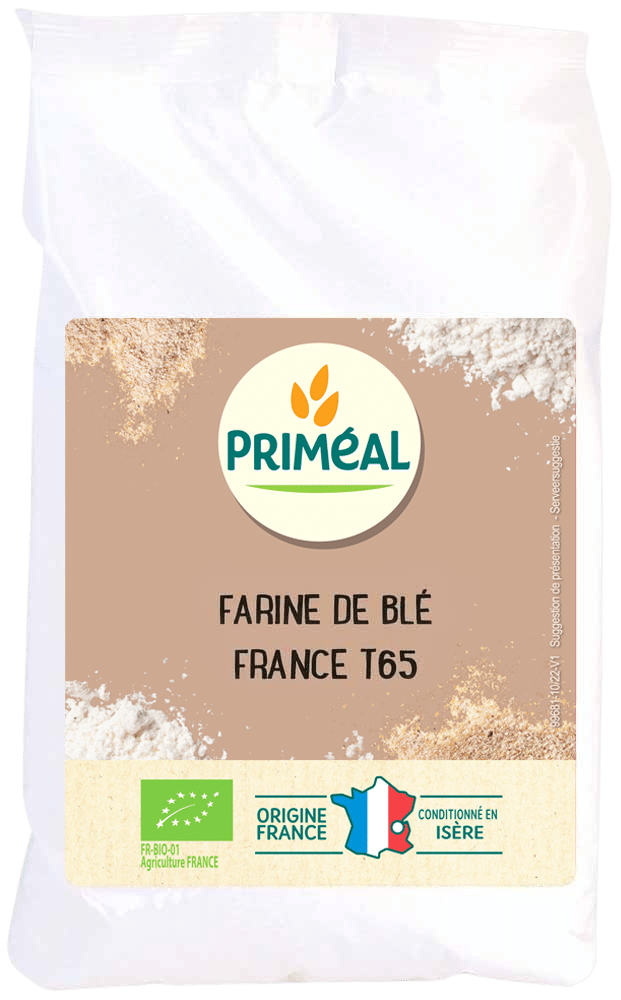 - 300 g de farine spécial pizza ou de farine de blé T 65 Priméal