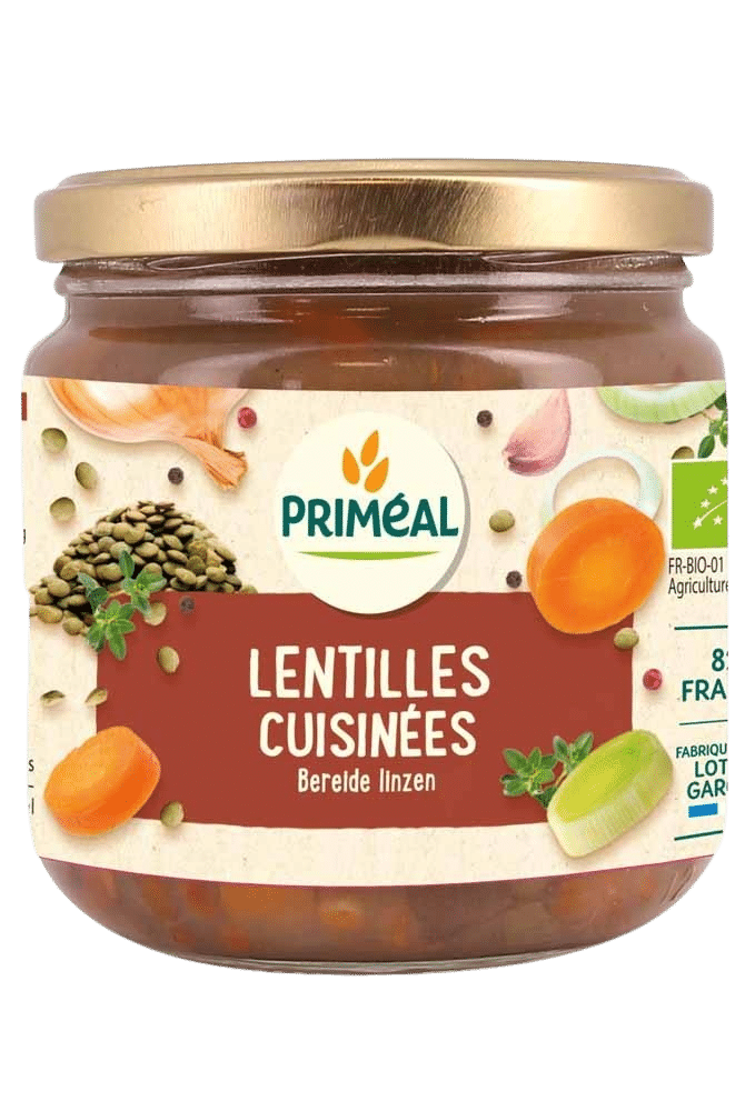 - 1 bocal de 400 g de lentilles cuisinées Priméal
